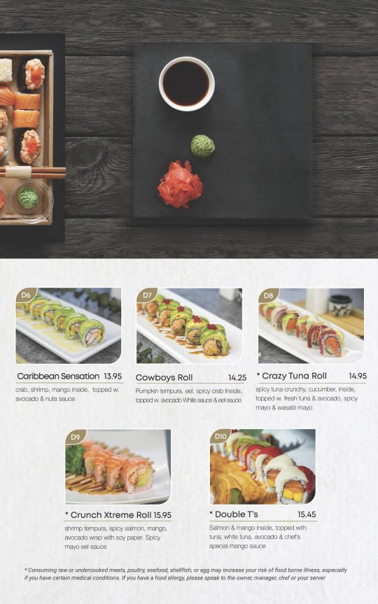 Spicy salmon crunchy and avocado, topped with tuna & nuta sauce.